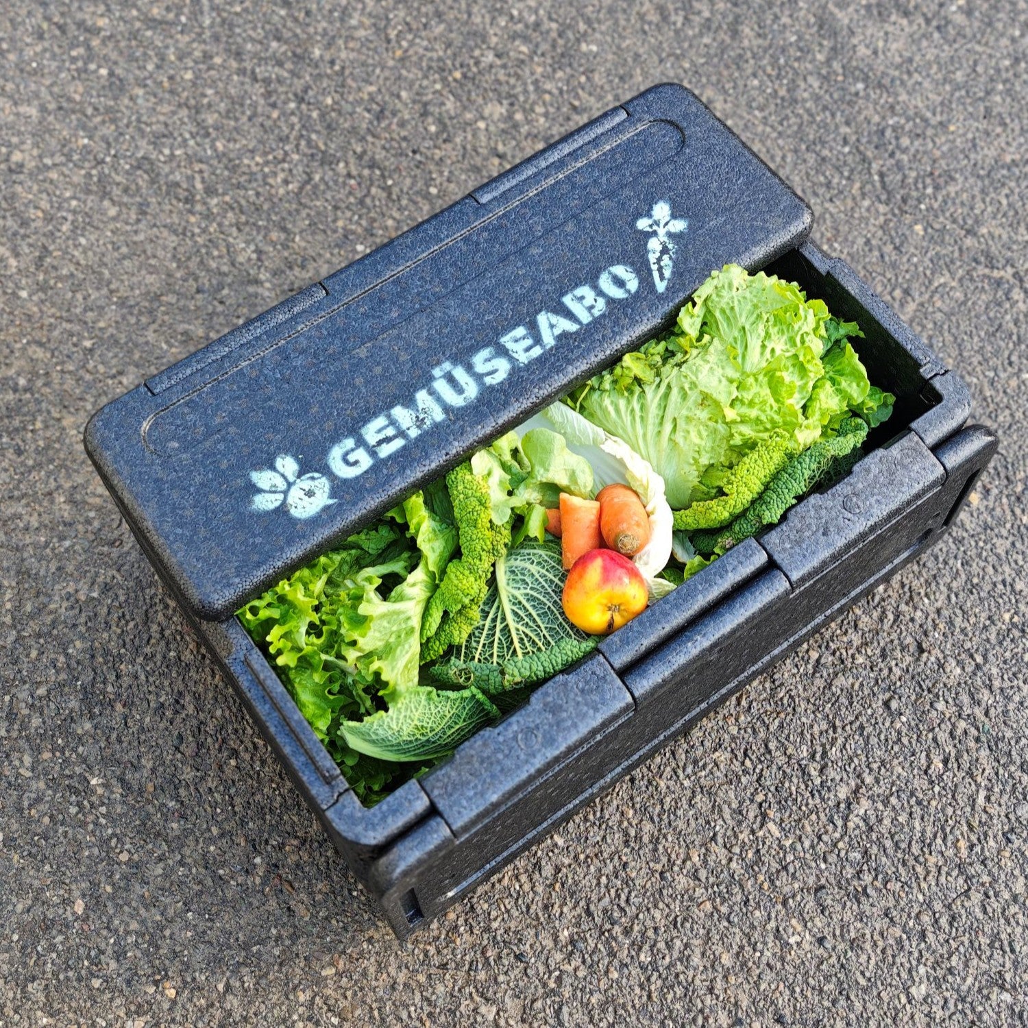 2. Du wohnst in unserem Liefergebiet (siehe reguläres Gemüseabo) und erhältst eine schwarze wiederverwendbare Styroporbox jeweils am Donnerstag per Post. Du gibst die Box dann der Post jeweils wieder zurück, damit sie sie uns zurückbringen können.